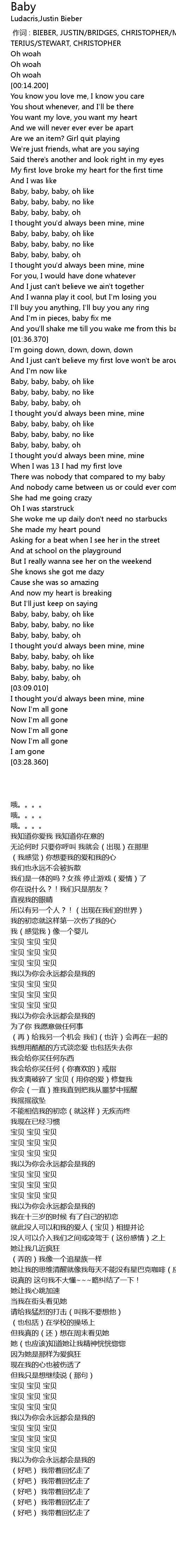 | [02:50.970] | Baby, baby, baby, oh |