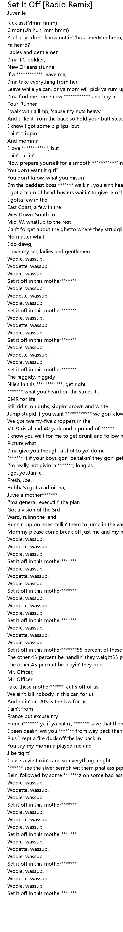 Wodette, wassup, |