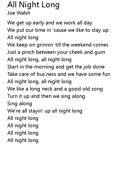 All night long, all night long |