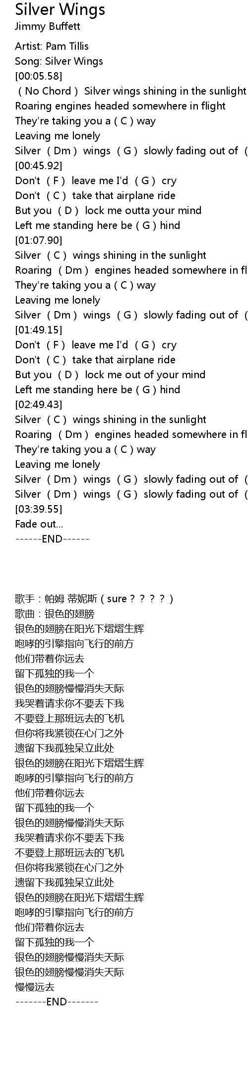 | [00:37.21] | Silver Dm wings G slowly fading out of C sight |