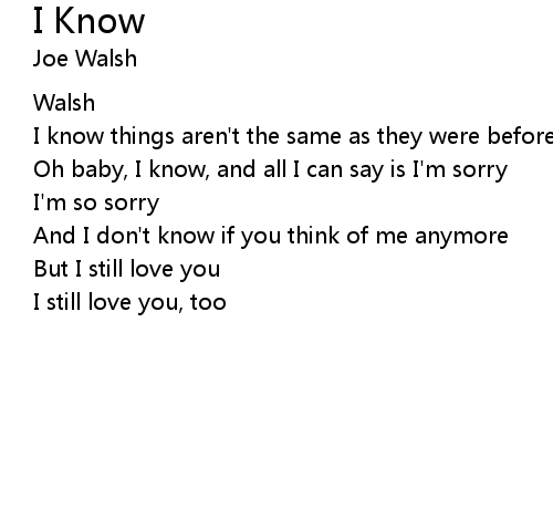 | Oh baby, I know, and all I can say is I'm sorry | |
