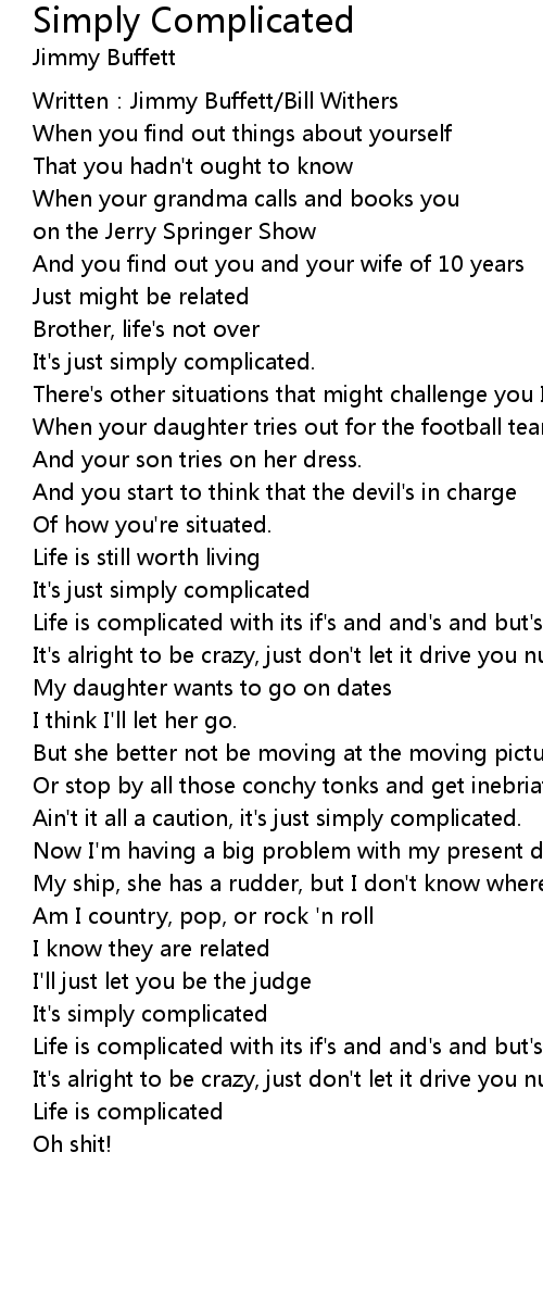| Ain't it all a caution, it's just simply complicated. | |