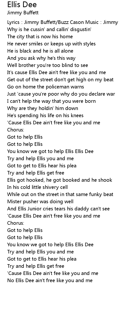 | It' s cause Ellis Dee ain' t free like you and me | |