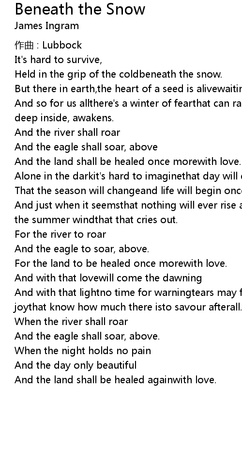 | And so for us allthere' s a winter of fearthat can rape the souluntil the spirit deep inside, awakens. | |