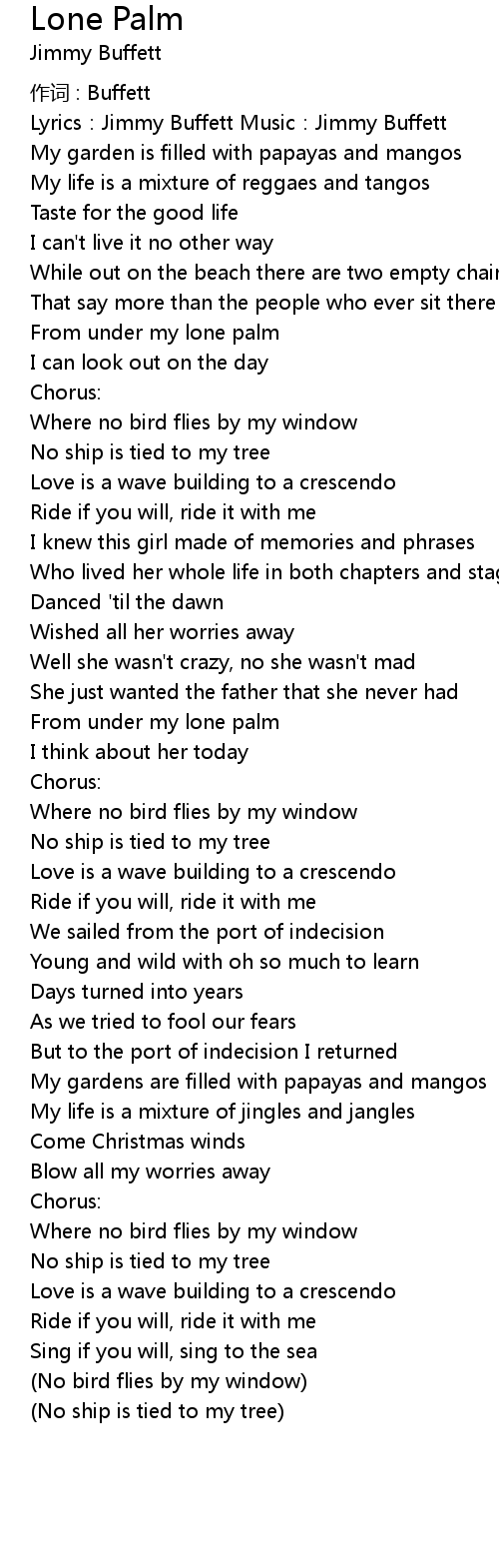 | Lyrics:Jimmy Buffett Music:Jimmy Buffett | |
