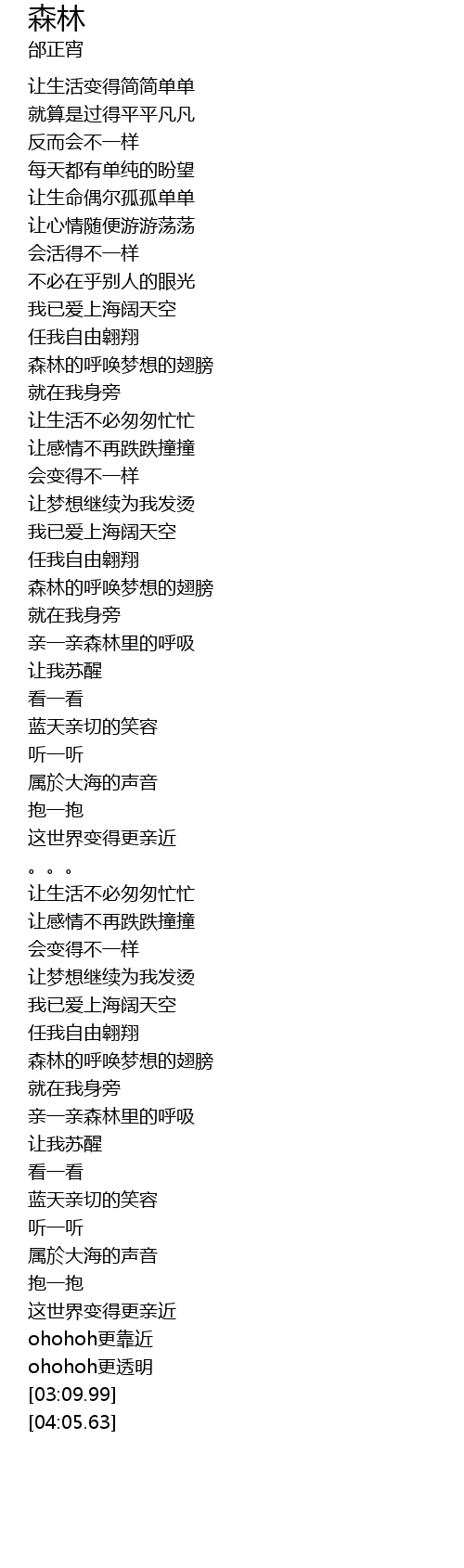 | [01:26.07] | 亲一亲森林里的呼吸 |