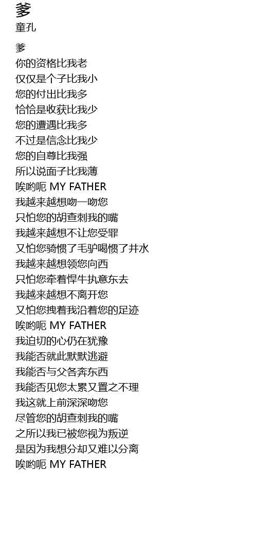 | [01:39.59] | 唉哟呃 MY FATHER |