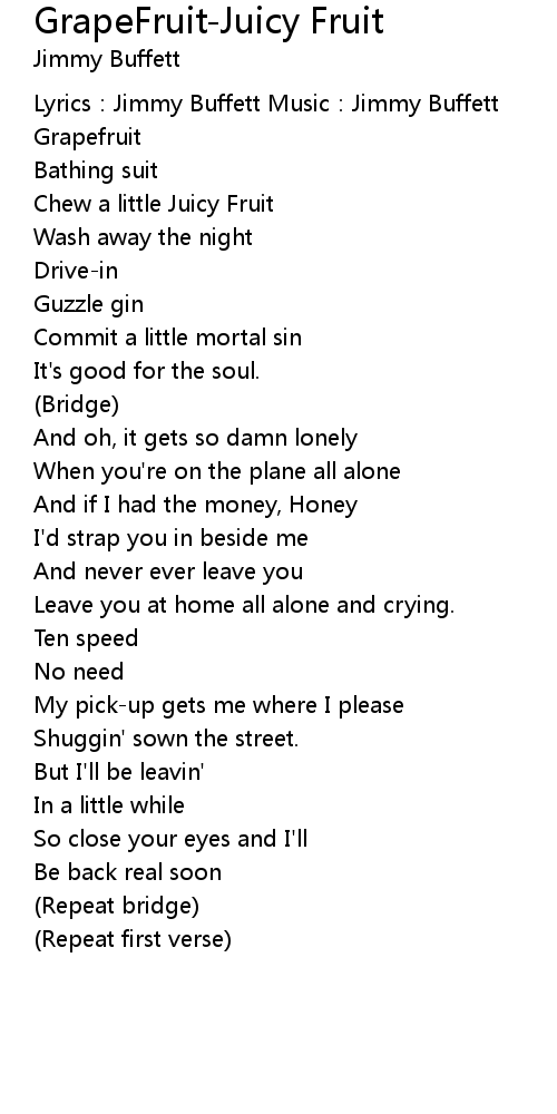 | Lyrics:Jimmy Buffett Music:Jimmy Buffett | |