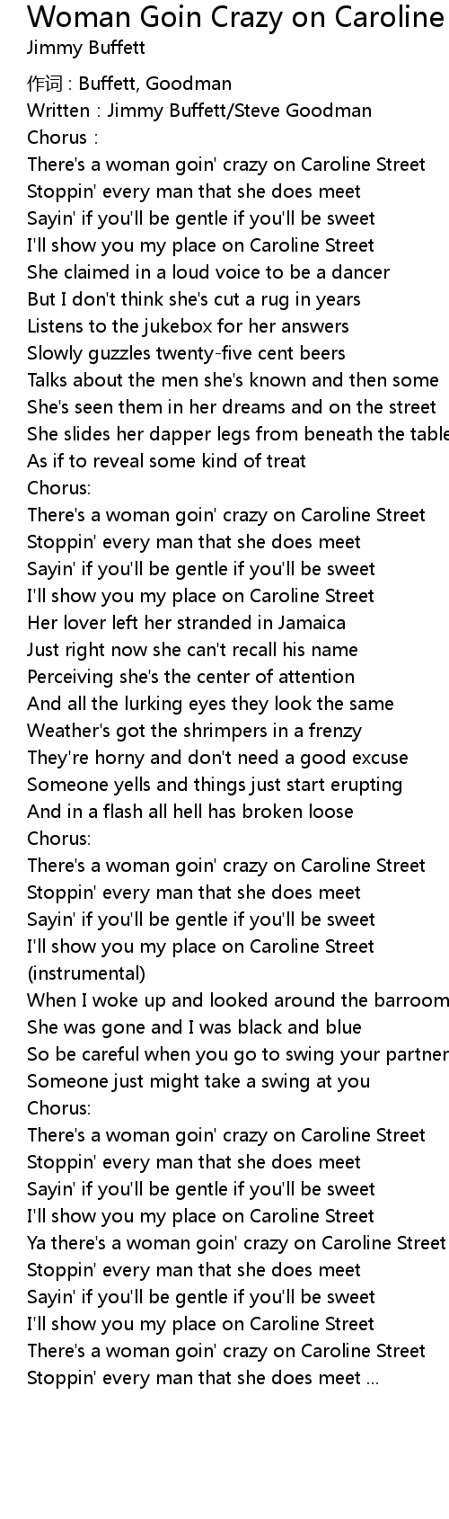 | There' s a woman goin' crazy on Caroline Street | |