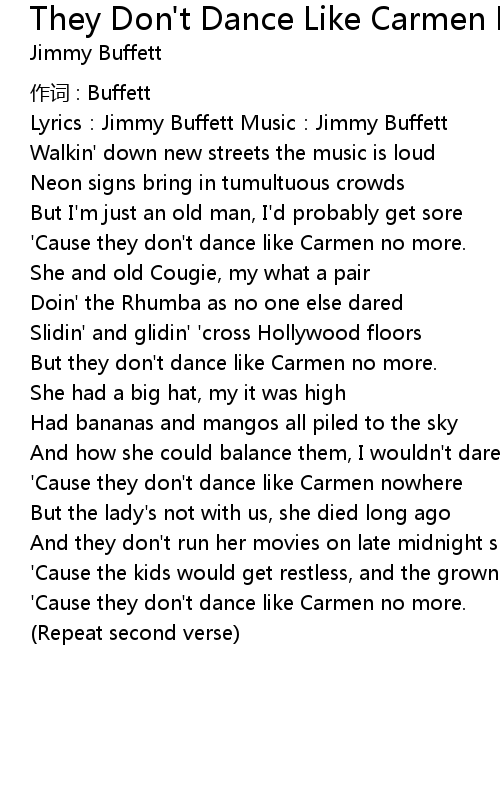 | ' Cause they don' t dance like Carmen no more. | |
