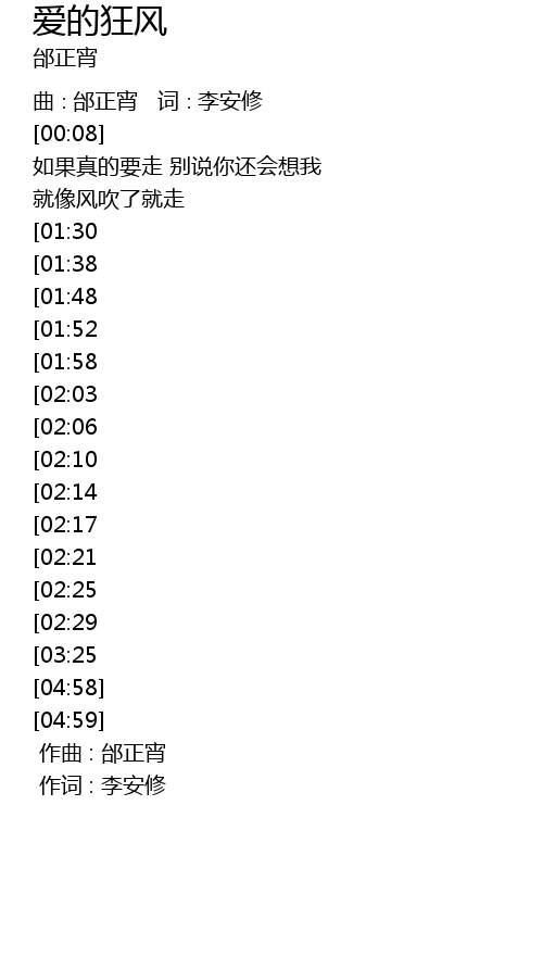 | [00:59][02:06][02:51] | ài de kuáng fēng sì miàn bā fāng chuī sòng |