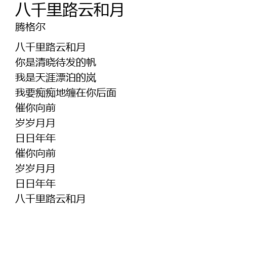 八千里路云和月 ba qian li lu yun he yue Lyrics