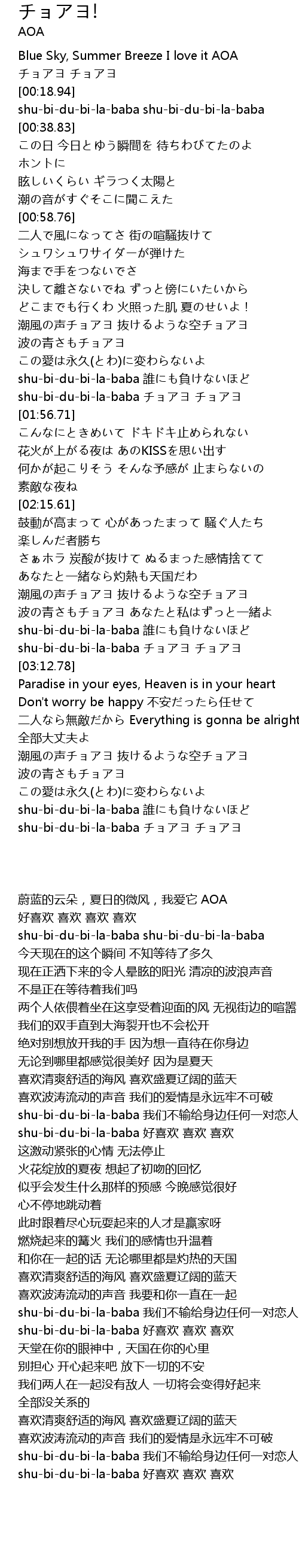 | [04:00.61] | shu-bi-du-bi-la-baba チョアヨ チョアヨ |