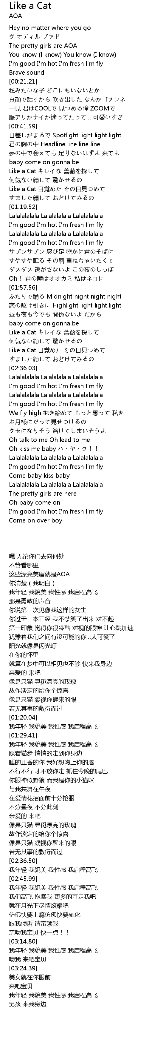 | [02:26.96] | Like a Cat mù jué mù jiàn |