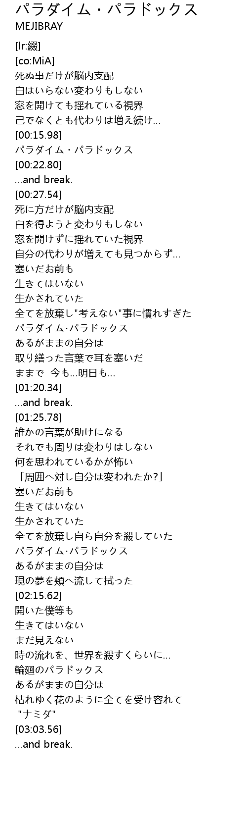 | [02:40.06] | 時の流れを、世界を殺すくらいに… |