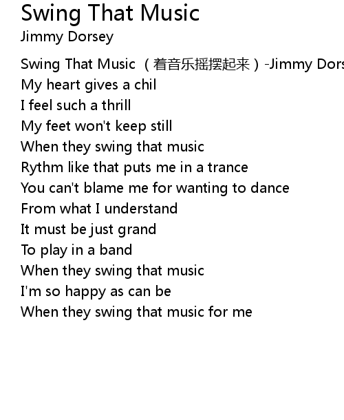 | [00:00.00] | Swing That Music zhe yīn yuè yáo bǎi qǐ lái Jimmy Dorsey |