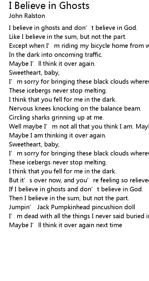 | Song | I Believe in Ghosts |