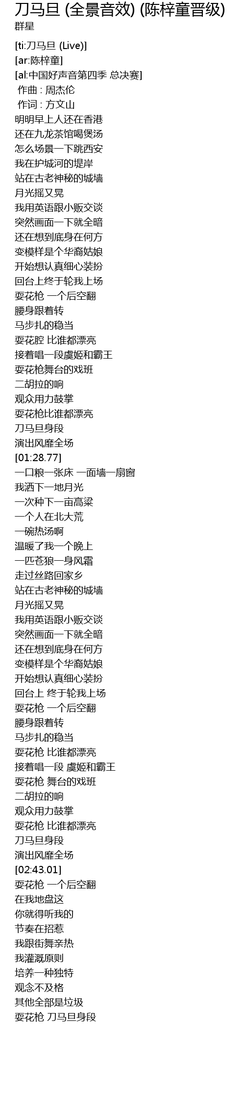 | Song | 刀马旦 (全景音效) (陈梓童晋级) |
