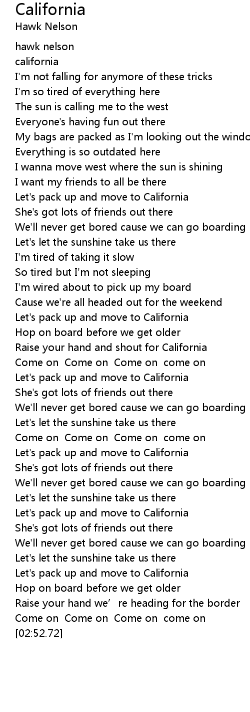 | [00:43.41] | Let's pack up and move to California |