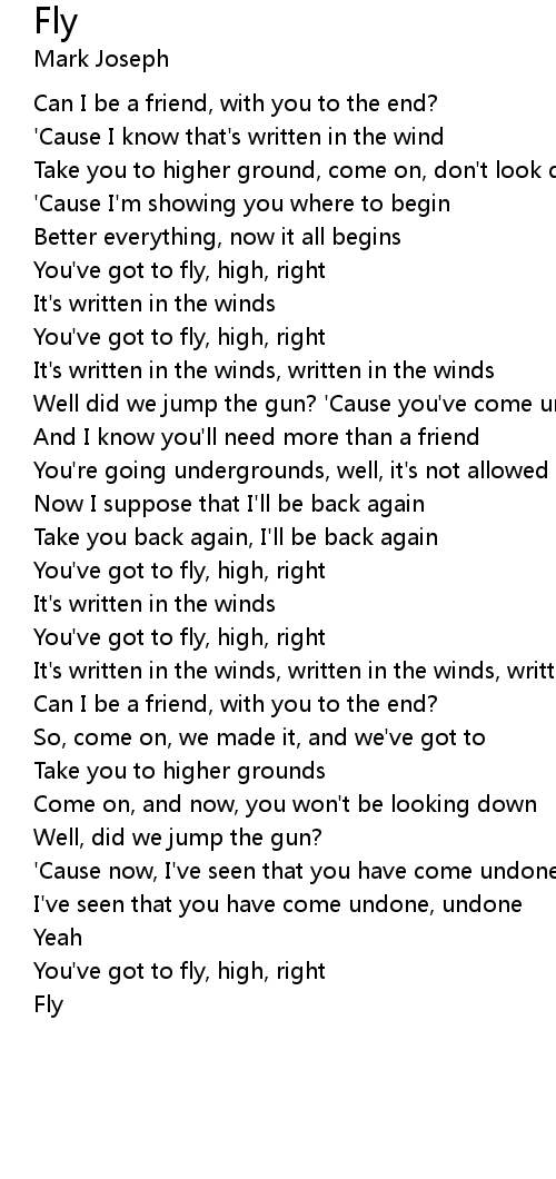 You've got to fly, high, right |