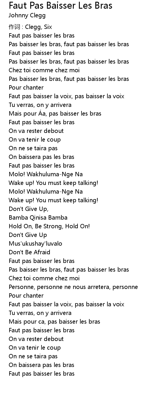 | Song | Faut Pas Baisser Les Bras |