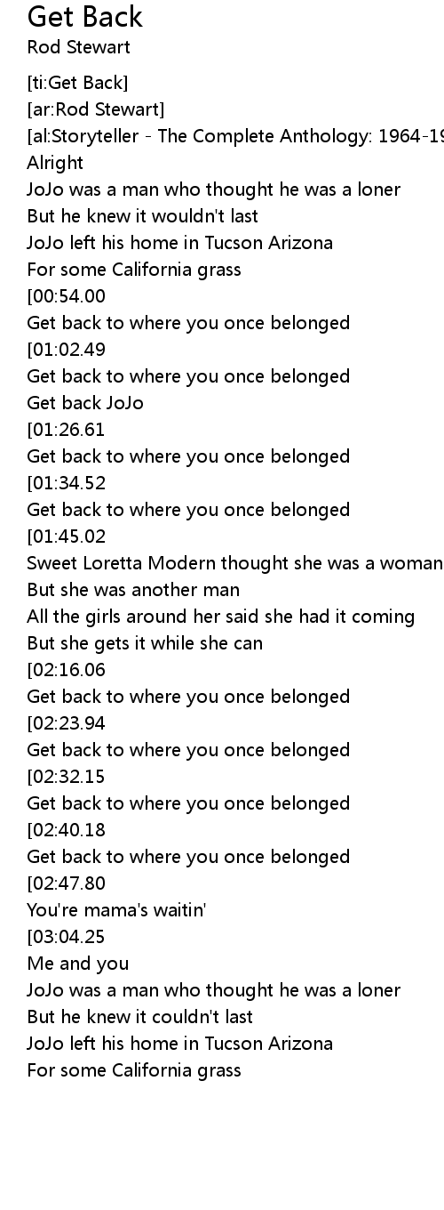 [02:41.36][02:40.18] Get back JoJo, get back, get back