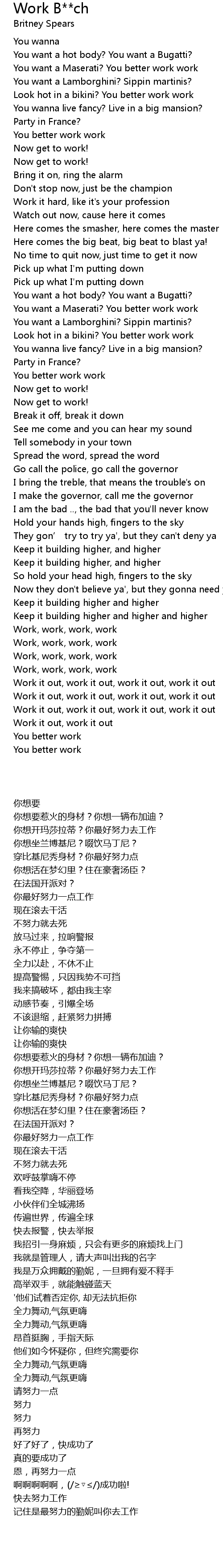 | [03:34.89] | Work it out, work it out, work it out, work it out |