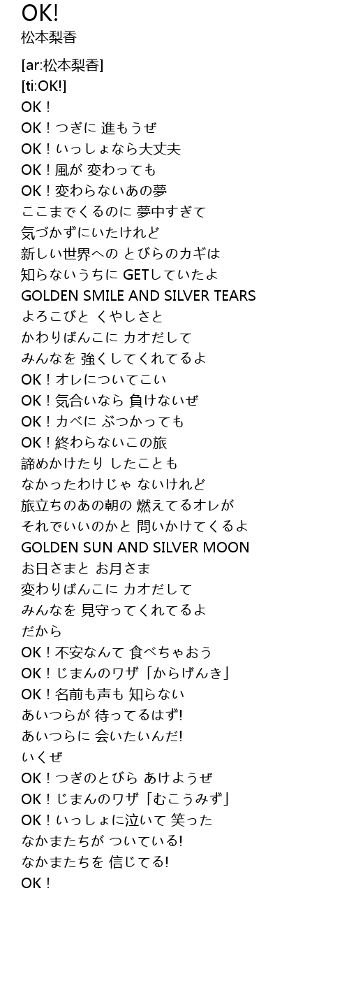 | [00:19.74] | OK!風が 変わっても |