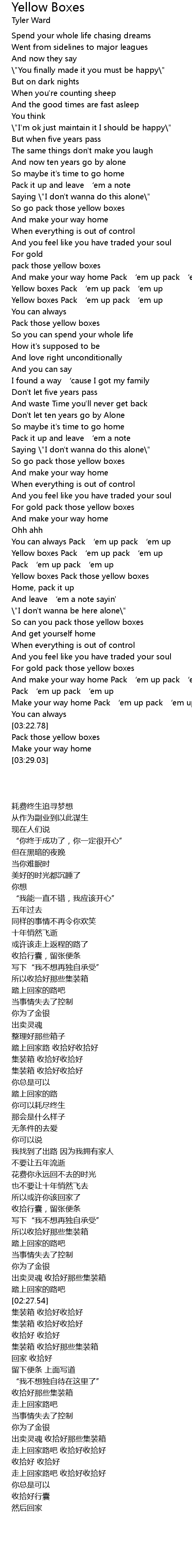 | [02:37.96] | Yellow boxes Pack ' em up pack ' em up |