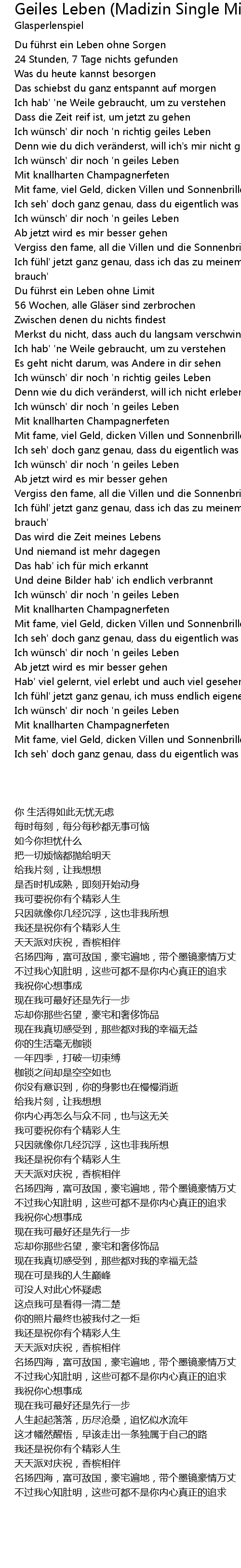 | [02:14.0] | Vergiss den fame, all die Villen und die Sonnenbrillen |