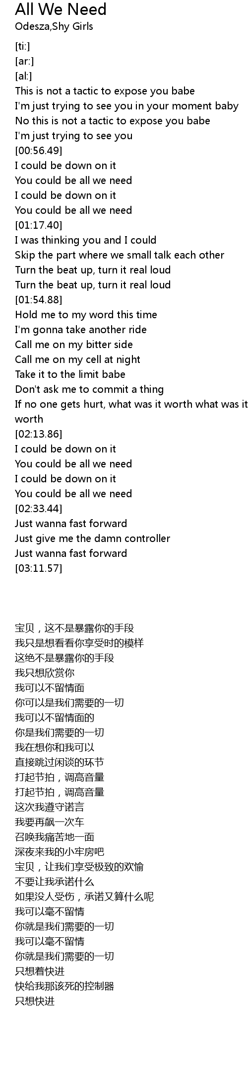 | [02:17.40] | You could be all we need |