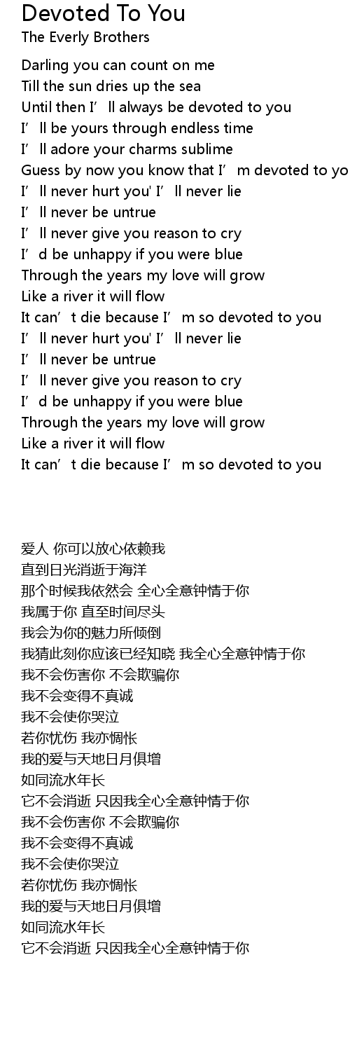 | [00:16.990] | Until then I' ll always be devoted to you |