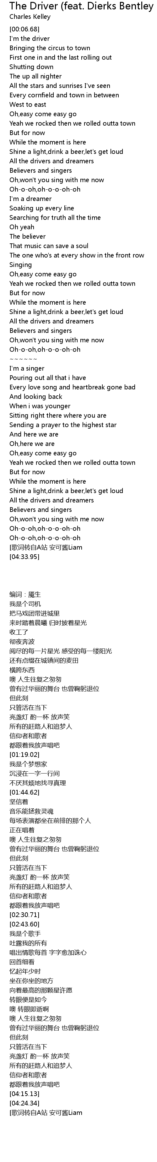 | Song | The Driver (feat. Dierks Bentley & Eric Paslay) |