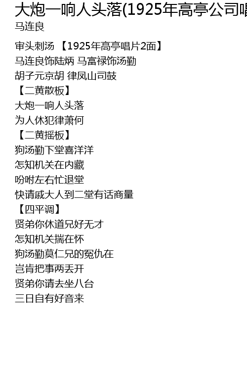 | [00:02.32] | 审头刺汤 【1925年高亭唱片2面】 |