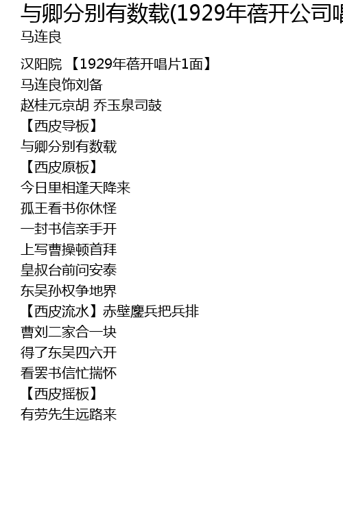 | [00:01.04] | 汉阳院 【1929年蓓开唱片1面】 |