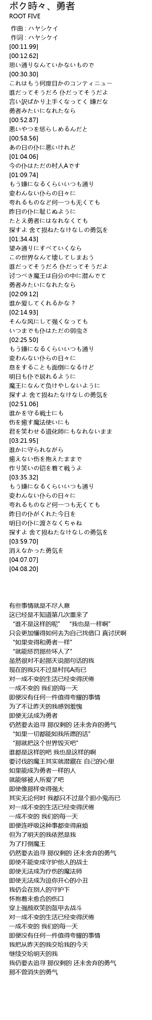 | [03:54.14] | 探すよ 舍て损ねたなけなしの勇気を |