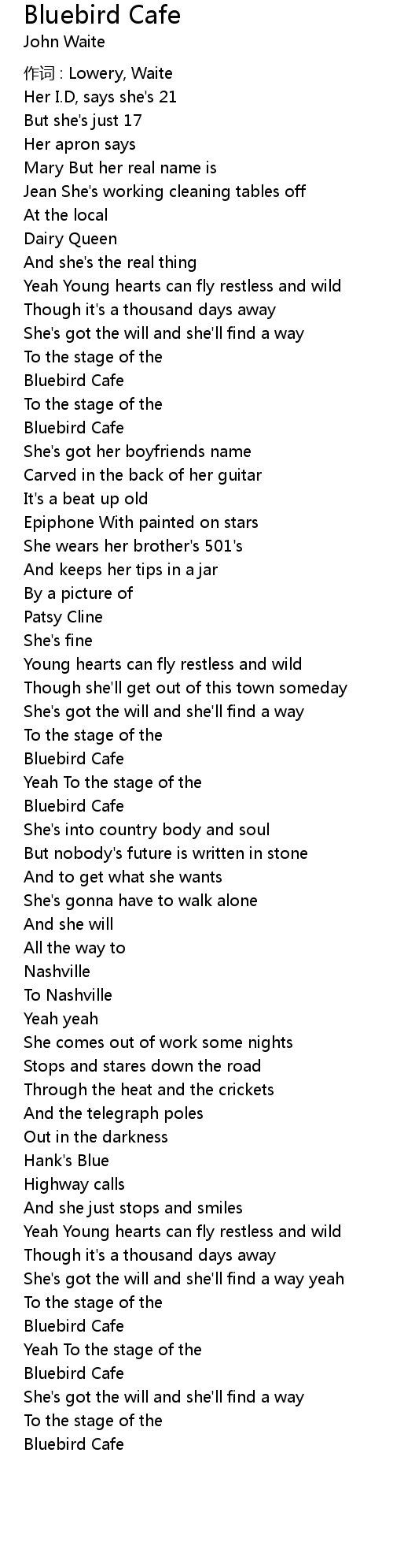| Song | Bluebird Cafe |