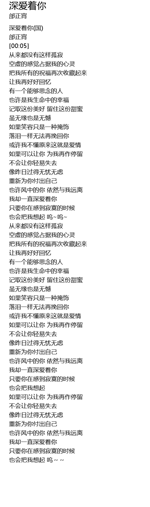 | [03:42] | wo que yi zhi shen ai zhe ni |