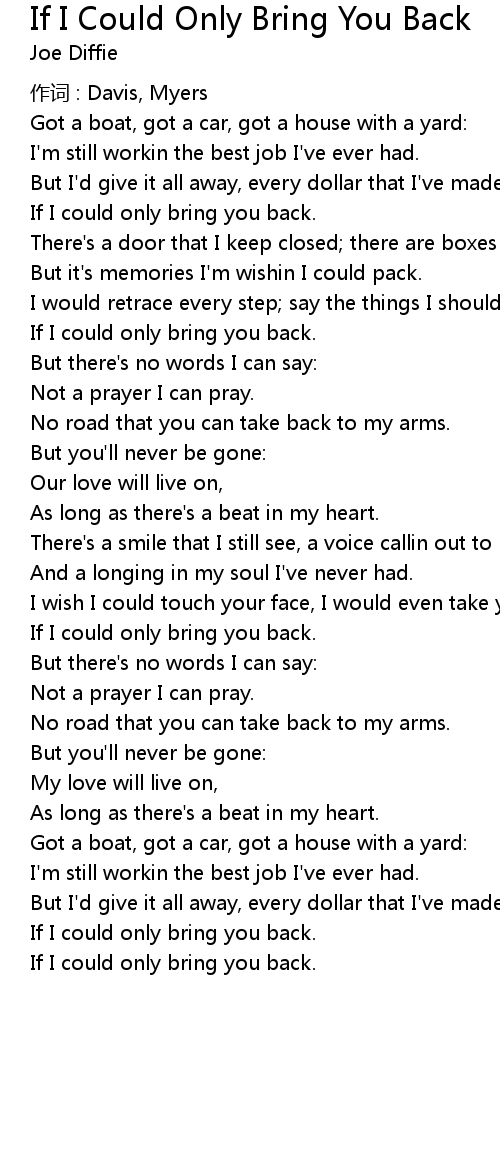 | If I could only bring you back. |