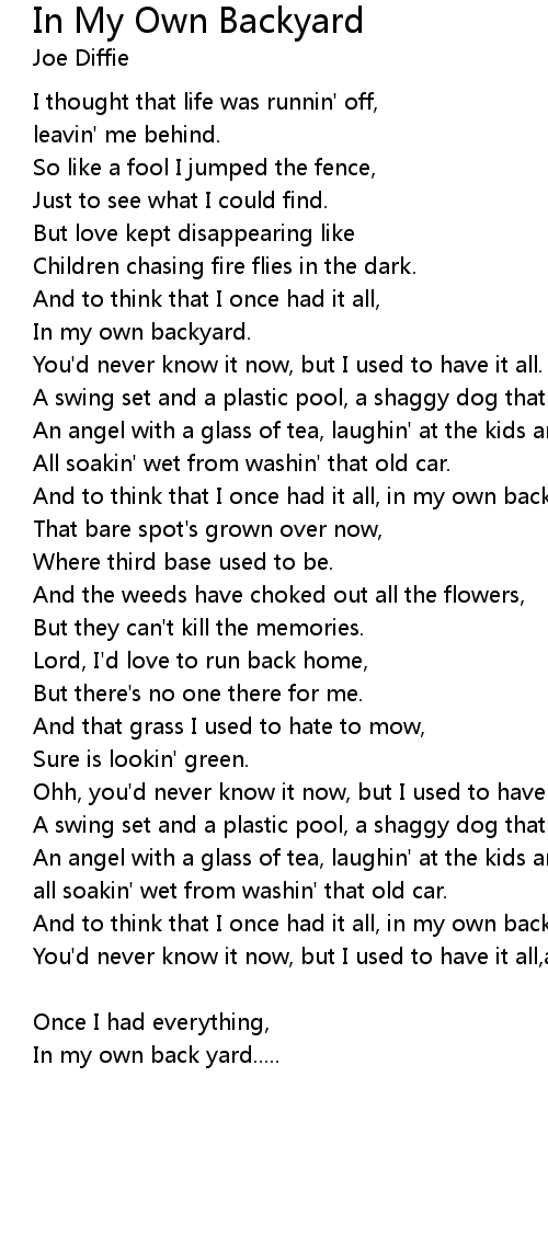 A swing set and a plastic pool, a shaggy dog that lived to fetch a ball. |
