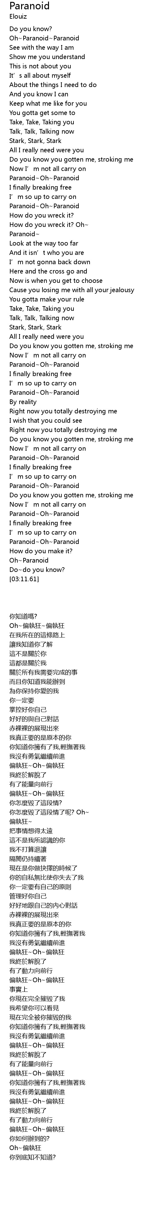 | [03:02.20] | Oh~Paranoid |