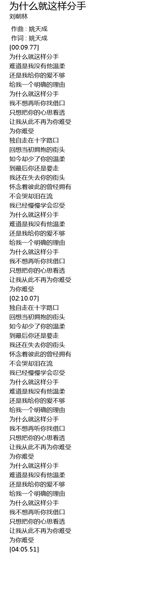 | [01:51.30] | wèi shí me jiù zhè yàng fēn shǒu |
