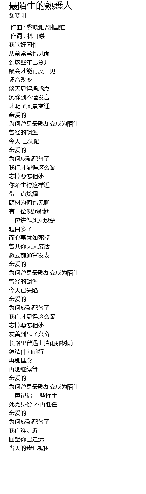 | [01:46.36] | 为何曾是最熟却变成为陌生 |