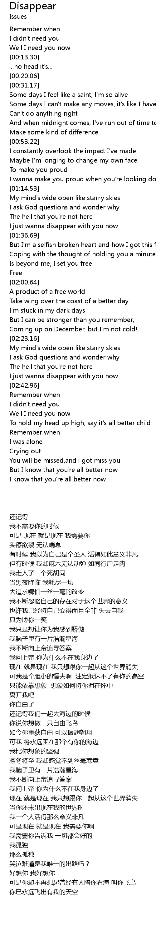Disappear Lyrics