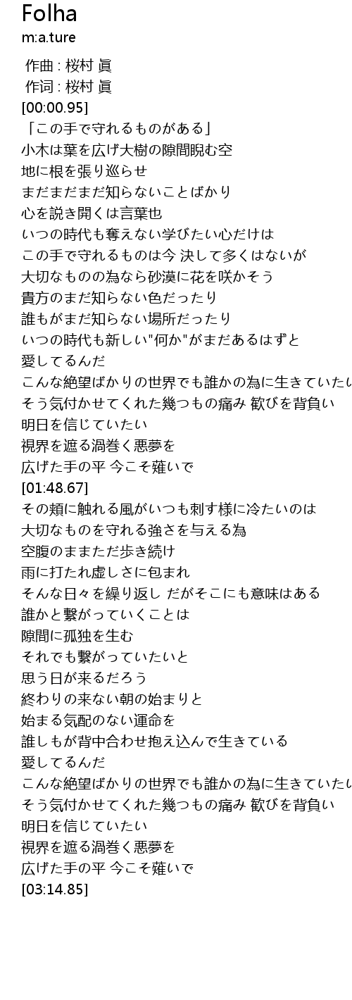 | [00:00.00] | 作曲 : 桜村 眞 |