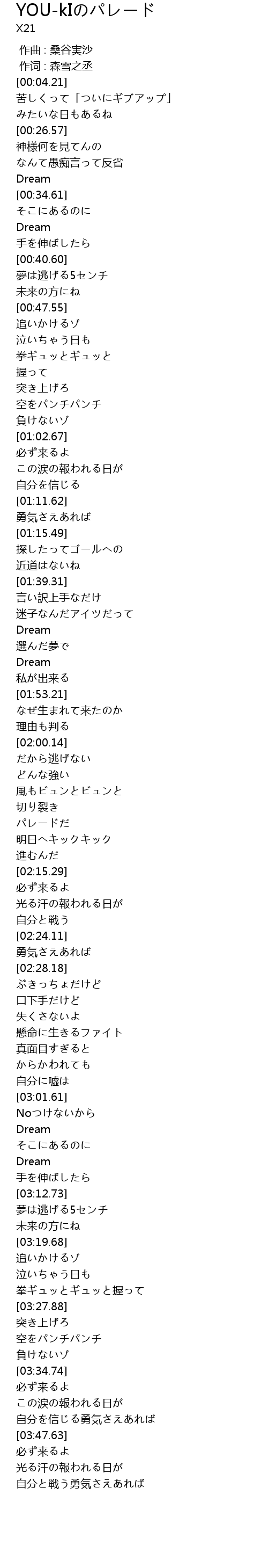 | [03:24.39] | 拳ギュッとギュッと握って |