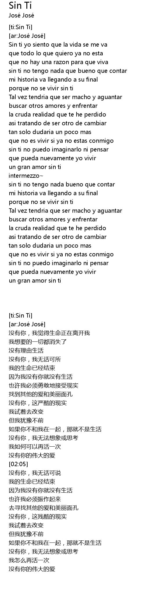 | [00:16] | Sin ti yo siento que la vida se me va |
