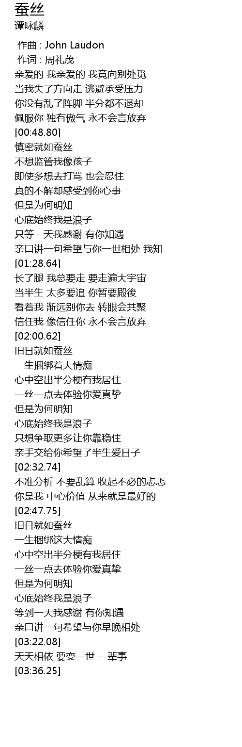 | [01:38.94] | 当半生 太多要追 你暂要殿後 |