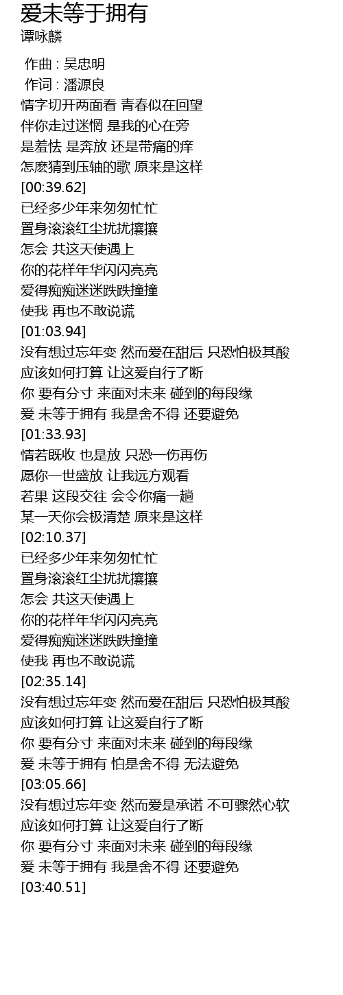 | [02:56.74] | 爱 未等于拥有 怕是舍不得 无法避免 |