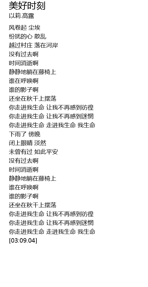 | [02:58.58] | 你走进我生命 让我不再感到彷徨 |